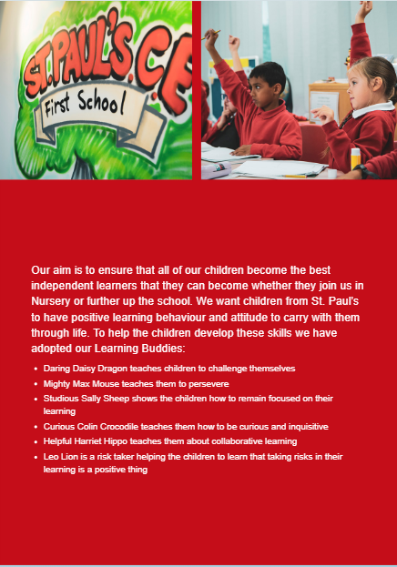 The curriculum at St Paul's is a knowledge and skills based curriculum which is split into half-termly topics, with each topic covering different subject areas such as Science, History, Geography, Art, D.T. and Music.